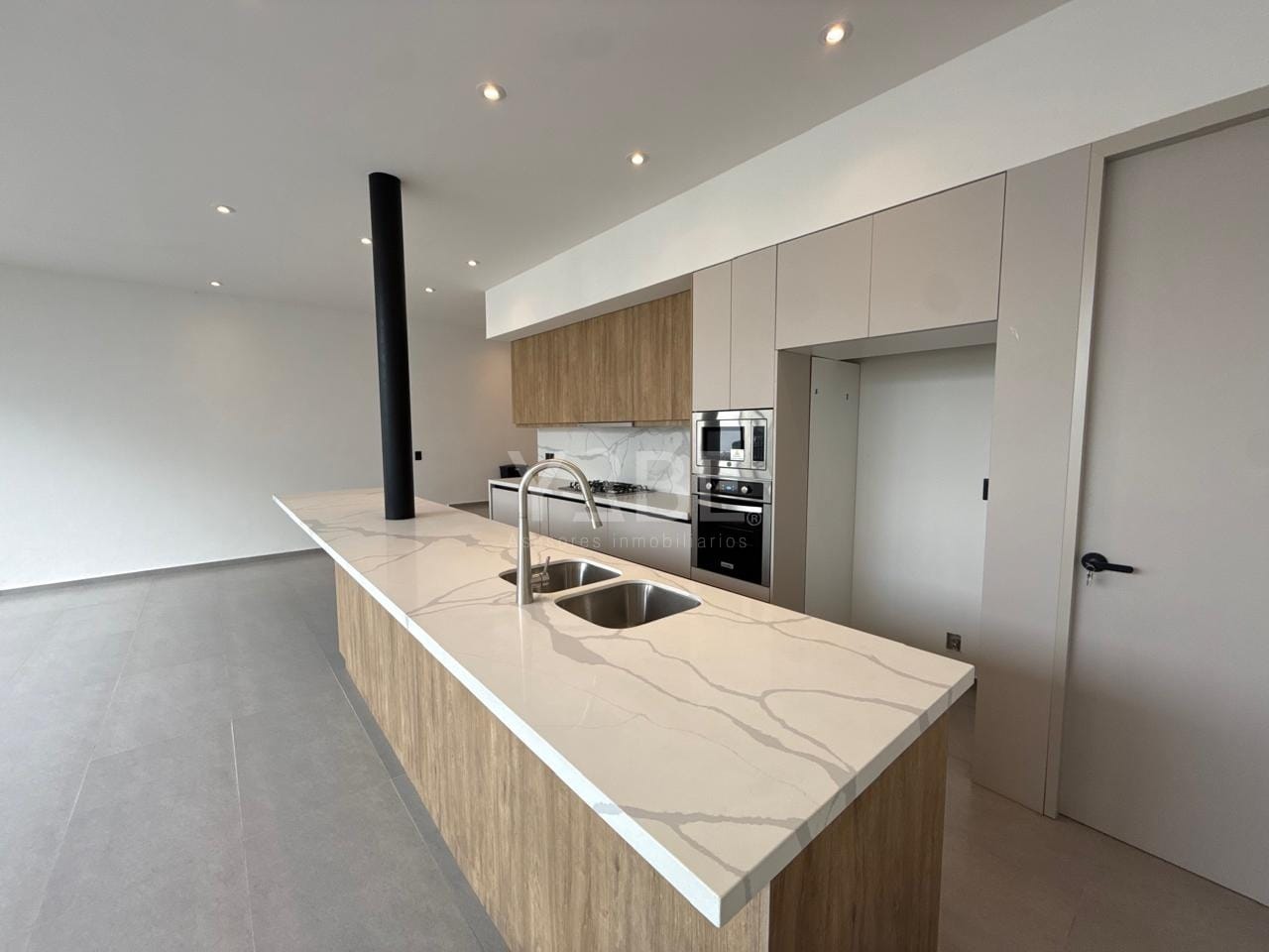 * Cocina equipada con cubierta de cuarzo blanco puro